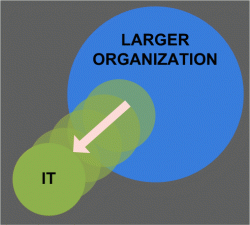 Instead, I wonder whether what’s really needed – in the long term – isn’t a centripetal dynamic to drive the activities of an IT organization closer to the activities of the larger organization rather than farther away.
